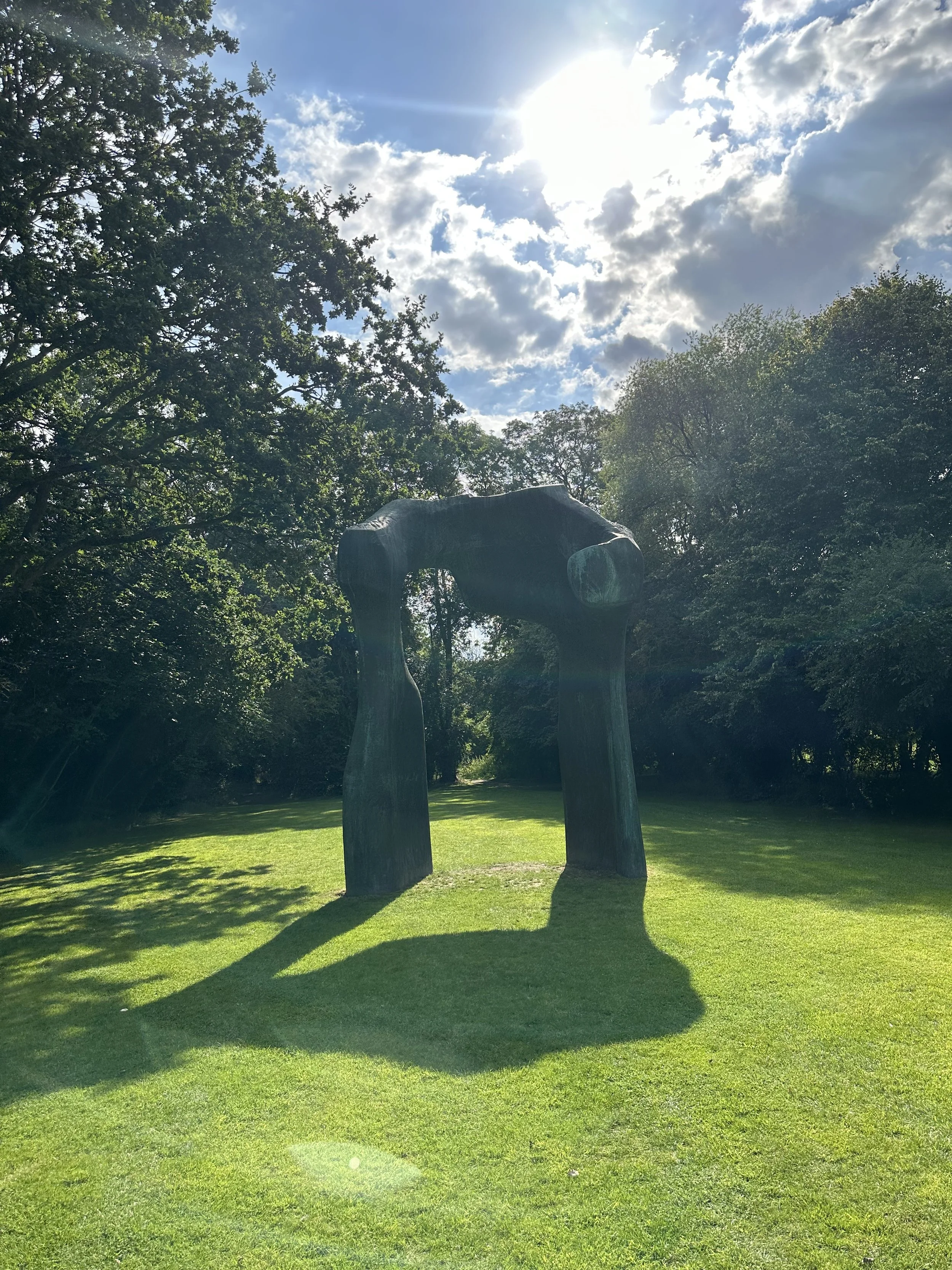 At the end of our 27th year in business we travelled up to Herfordshire. We visited the Henry Moore Foundation where he had his home and studios in the post war period. We took inspiration form a photograph of Henry Moore stepping outside his studio to gain a new perspective on his work.